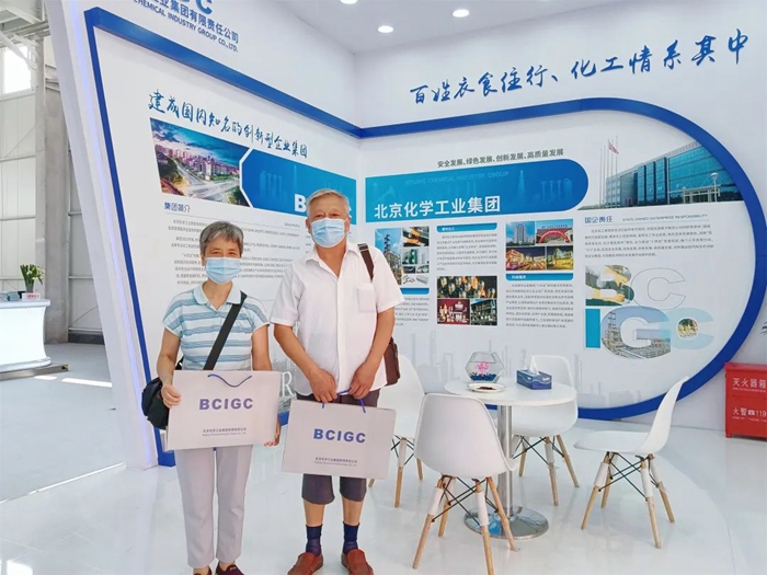 有着化工情结的观展人员在参观集团展位后欣然留影。