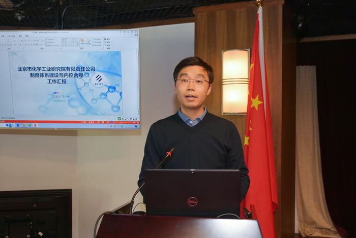 化研院党总支书记助理李志勇围绕制度体系建设和内控合规工作,华腾新材党总支书记齐小丽围绕合同管理分别作交流发言。