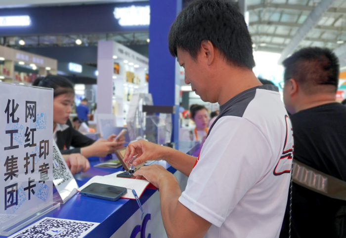 网红打卡印章,是此次参展的又一亮点,集团为此专门制作了有集团名称楼宇的印章。“4号馆,北化集团,3免(3个印章、免费)”的服贸会攻略已在“小红书”上传开,人们纷至沓来,在关注集团微信公众号后,将“永利集团304登录”印在自己的本上,让北京化工在潜移默化中传播。
