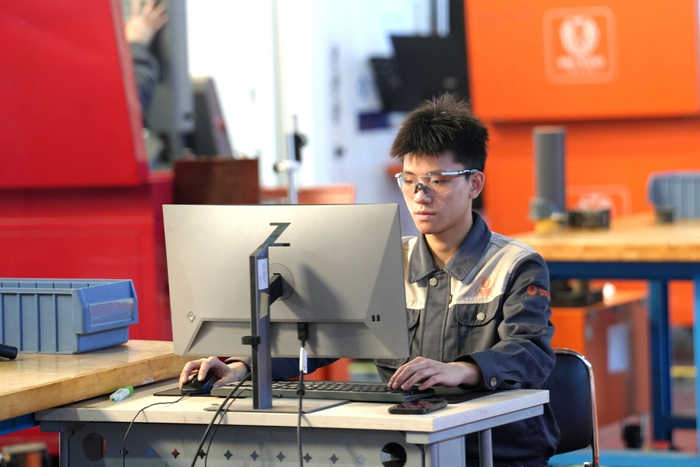 紧张而热烈,严肃而激昂——技师学院世界技能大赛集训基地内萦绕着技能逐梦、匠心筑梦的北化强音。