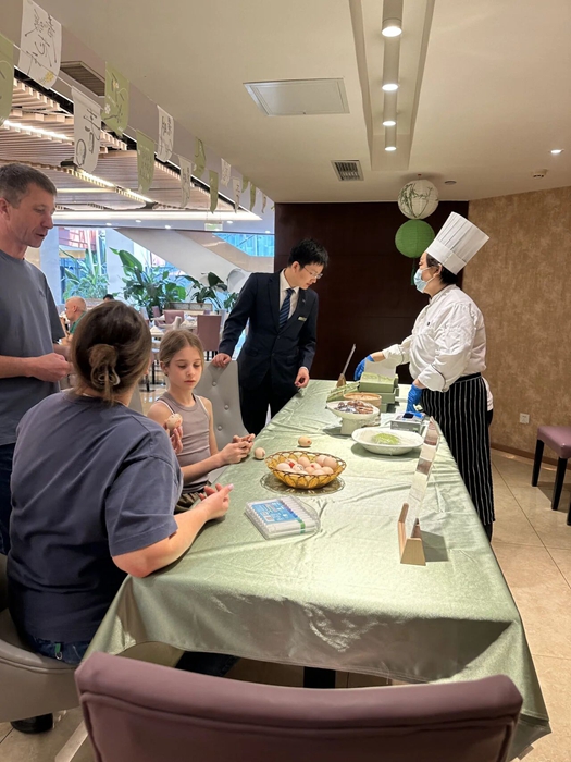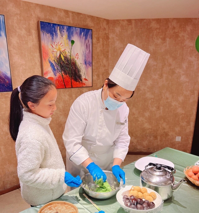 酒店以传统文化为内核,创新打造“住宿+文化”特色体验体系。酒店人员围绕传统节气推出指尖青团、艾草手作、纸鸢彩绘等民俗体验活动,让中华优秀传统文化走向国际访客。